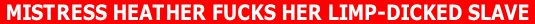 But I would have happily done the exact same thing, because I love a hard cock or dildo up my bum. And even if it makes me a loser and a sissy, I would gladly give up my anus for the Divine Mistress Heather and take a pounding from her giant pink cock. I know a man shouldn’t think this way, but I would even be willing to swap my cock for a vagina! Because I don’t like fucking - I like to be fucked - and I’d love to be fucked like the slave in this movie. Hard and fast by the Divine Mistress Heather!